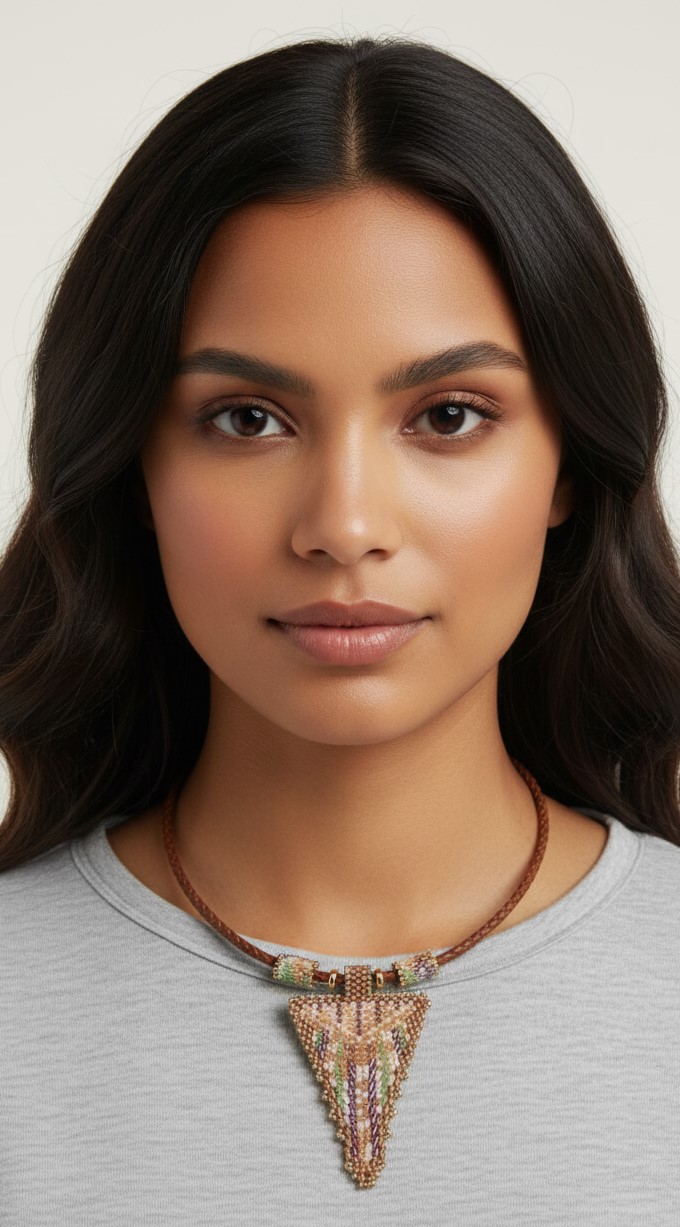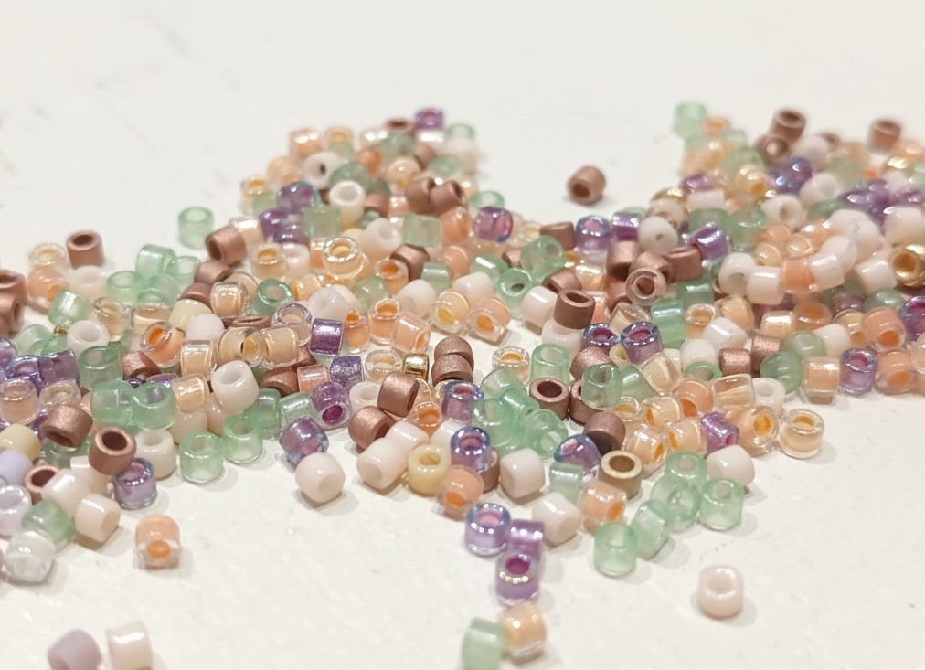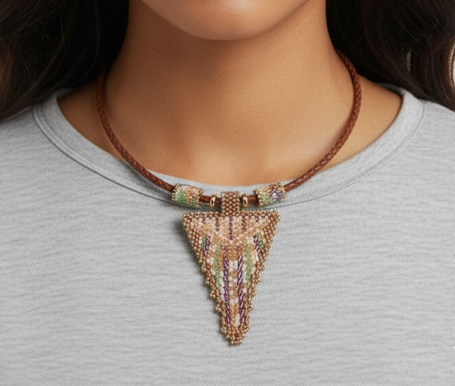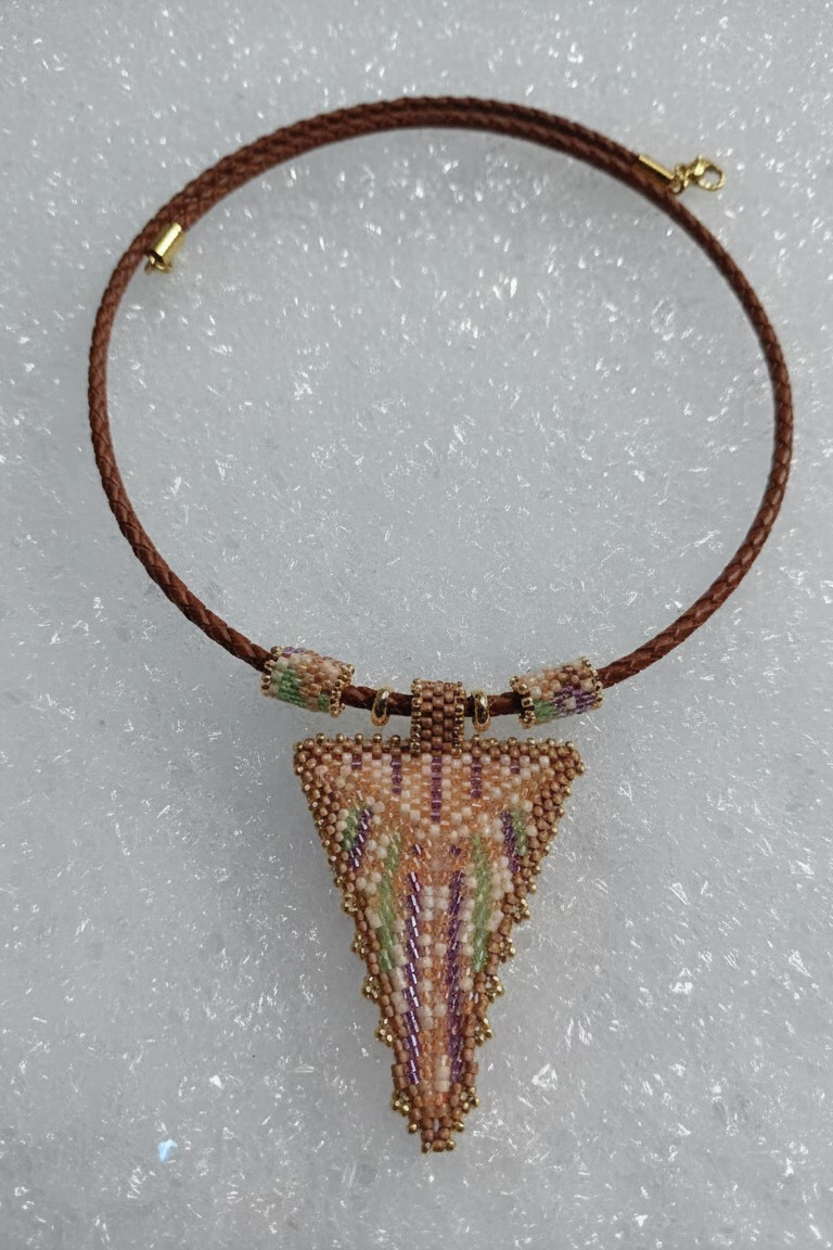 Collar tejido a mano con cuentas de cristal. Colores Pastel. El cuero mide 45 cm.