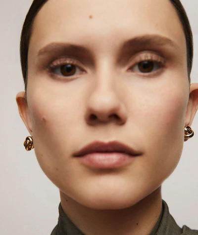 Pendientes Chapado en Oro 18 Kt nudo simple. Cierre presión. Longitud 14 mm.
