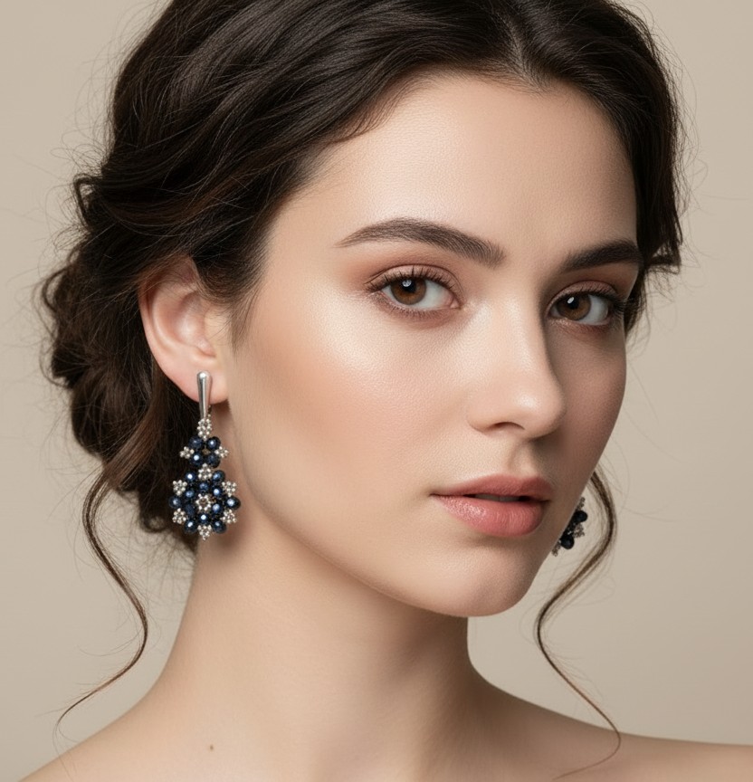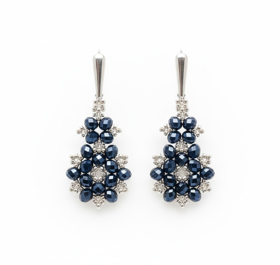 Pendientes tejidos con cristal y cuentas de rocalla con cierre de plata.